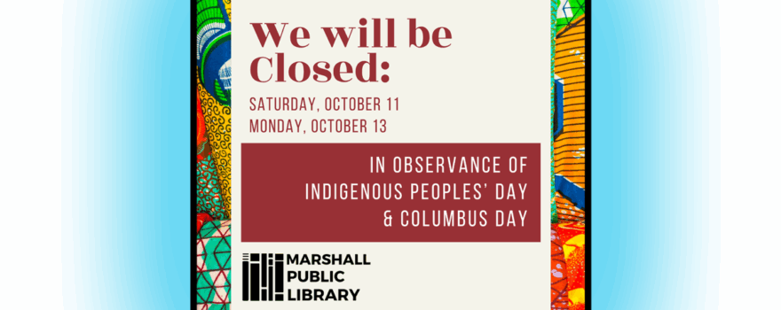 Read more »Marshall Public Library will be closed Saturday and Monday, October 11th and 13th in observance […]