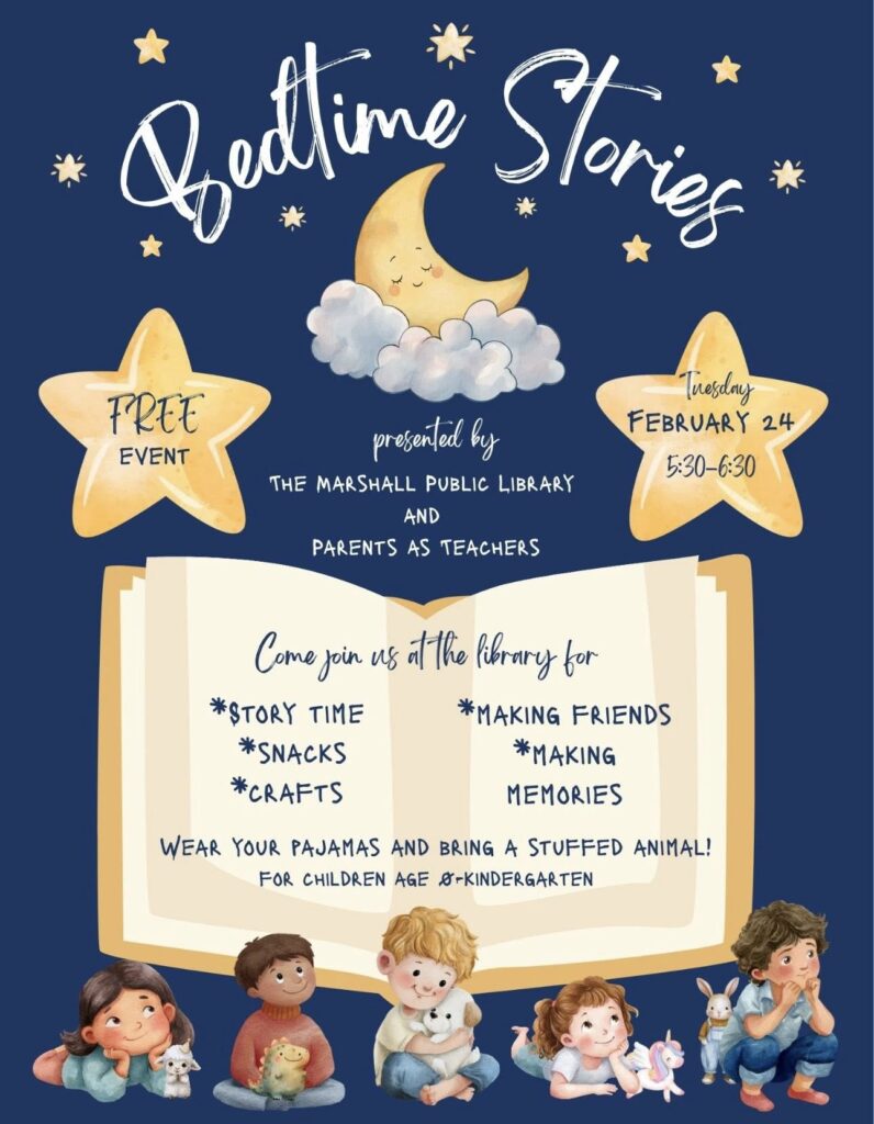 Parents as Teachers has partnered with the Marshall Public Library for a fun, free event for the little ones, Tuesday, February 24 5:30 PM to 6:30 PM. This is for children kindergarten age and younger. Join us for story time, snacks, crafts, making friends, and making memories.