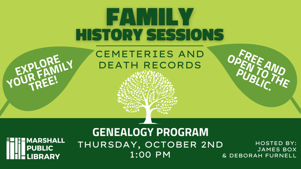 Family History Session: Cemeteries and Death Records – October 2nd @ 1:00 PM September 30, 2025 Events, Library News