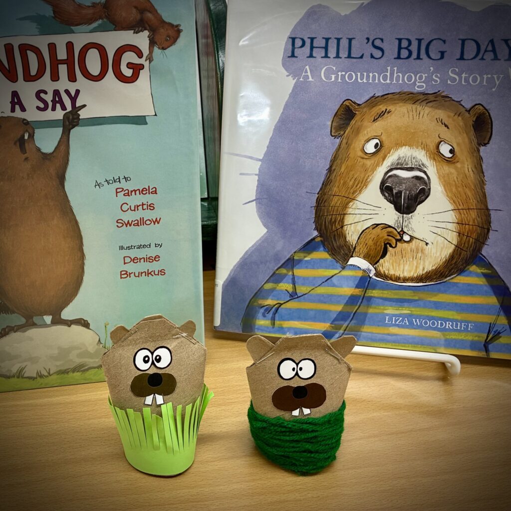 Toddler/Preschool Story Time 1/28 @ 10am – we’re going to make paper tube groundhogs to take home so your child can put them in the window on Groundhog’s Day to see if they cast a shadow. “See your shadow at your feet, back to bed to get more sleep. If your shadow can’t be seen early spring will turn things green”.