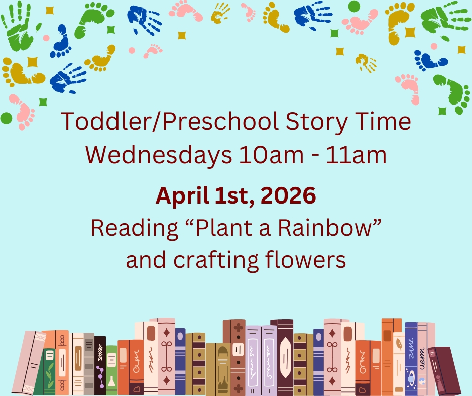 Join us for Toddler/Preschool Story Time Wednesday morning at 10:00 AM as we read Plant a Rainbow and craft flowers.